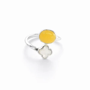 حجر طبيعي كهرمان بولندي مع صدف طبيعي اصفر و ابيض