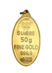 سبيكة ذهب صافي 50 جرام عيار 24 قيراط + عروة