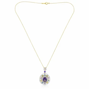 عقد فضة 925 مطلي باللون الذهبي مع حجر بنفسجي ملوّن